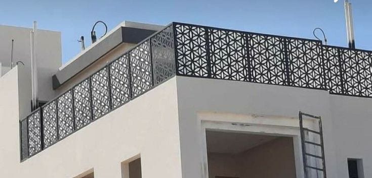 نقدم تصميم سواتر حديدية مشغولة بأشكال هندسية مختلفة, مثل الزهور أو الأشرطة الزخرفية, لإضفاء لمسة فنية وجمالية على الحوش.